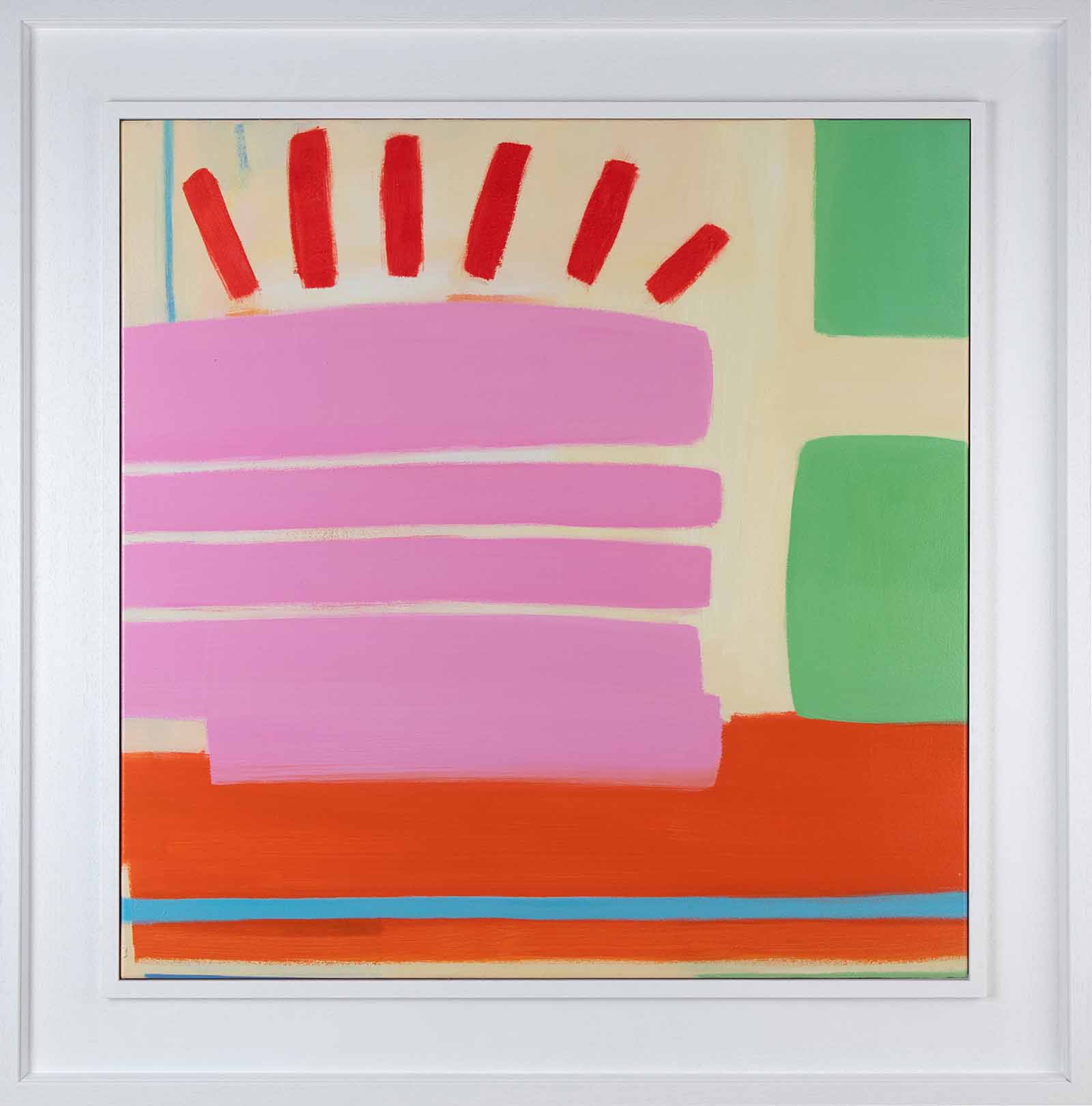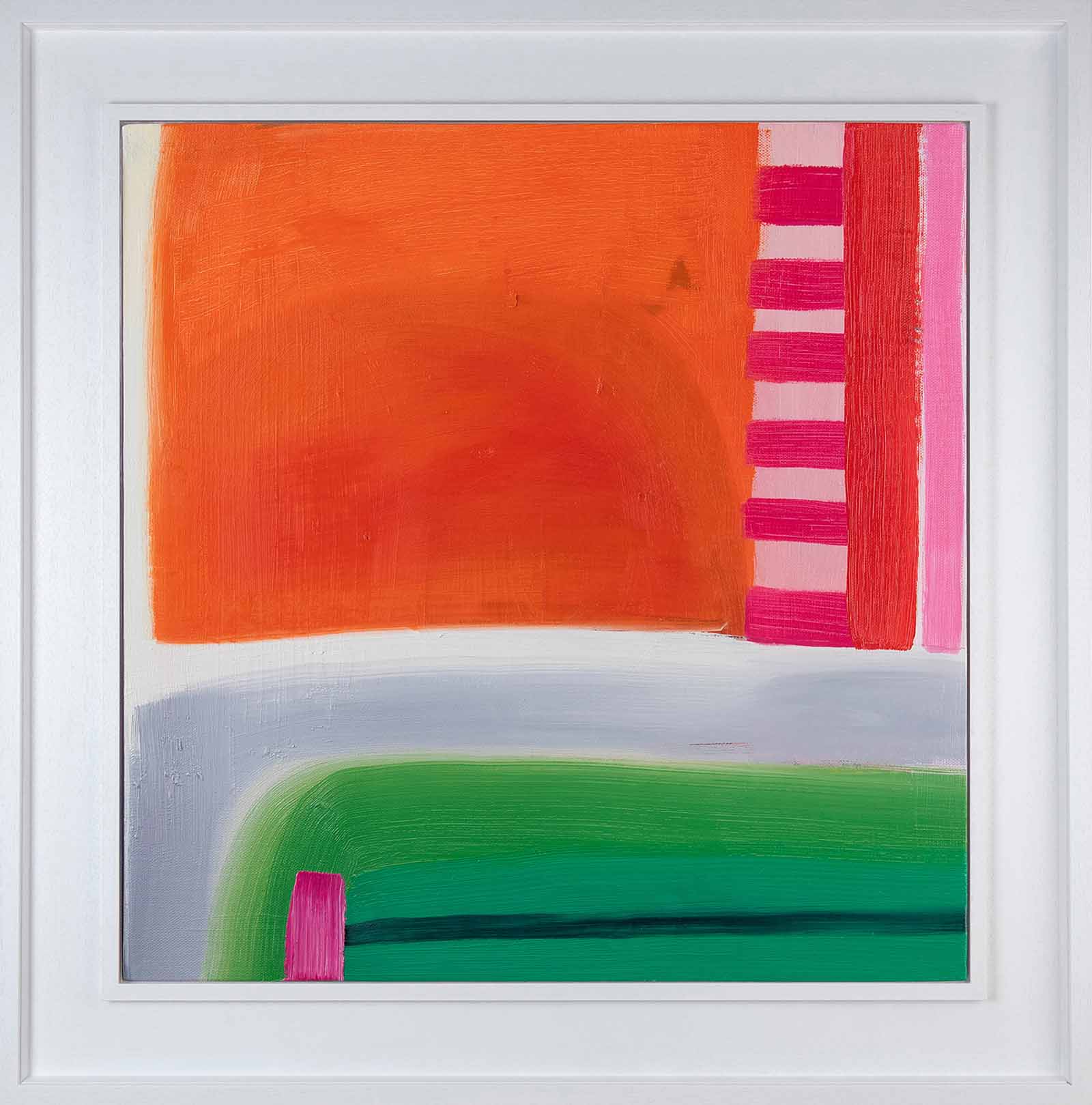 What drives her approach to painting is her obsession with colour and the need to discover new ways to express balance and tone. She is in constant pursuit of determining how each colour reacts and interacts to another. Often a single anomalous element of colour found nowhere else in a painting can anchor and ground the equilibrium of an entire composition.