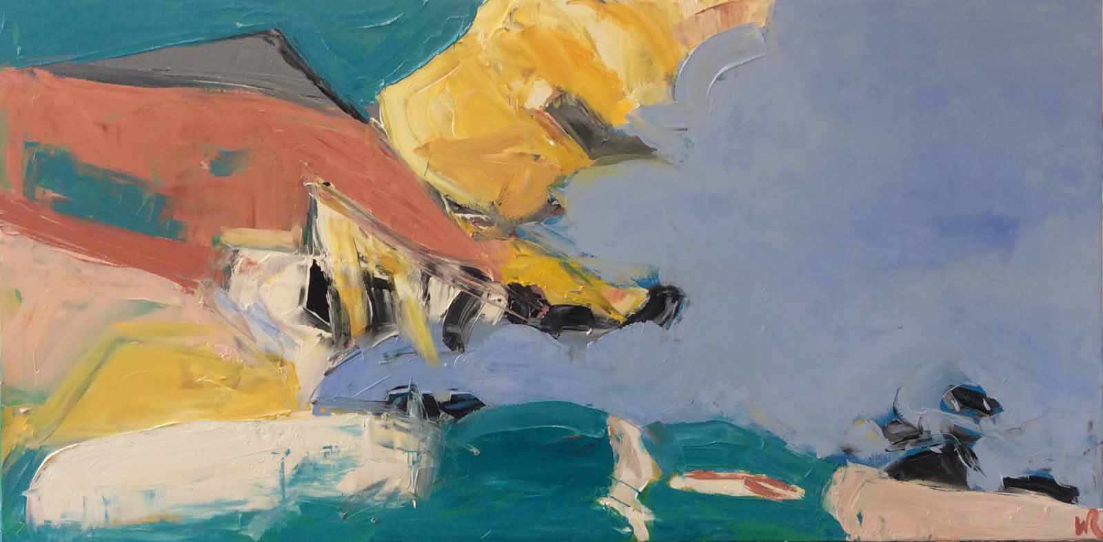 Similarly Peter Lanyon, Anseim Kiefer, Matisse and De Kooning all play a tangible role in their influences in Wendy’s work. Like these master artists that precede her, she is untiring with her practice. Be it drawing, painting or mixed media, Wendy is always exploring the atmospheres of different places, city, land and sea, aiming to convey not only the views, but also the spirit of the place and moment.